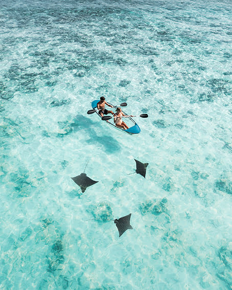 Para llegar a este oasis tropical, desde el aeropuerto internacional de Malé, el equipo le trasladará a su vuelo nacional de 55 minutos al aeropuerto de Kaadedhdhoo, donde será recibido por su mayordomo y trasladado al complejo en una lancha rápida de 10 minutos, o bien, un emocionante viaje en hidroavión que surca los cielos y descubre las numerosas islas esparcidas como esmeraldas, con arrecifes periféricos y bancos de arena en los tonos plata y cobalto que conforman la belleza de las Maldivas.