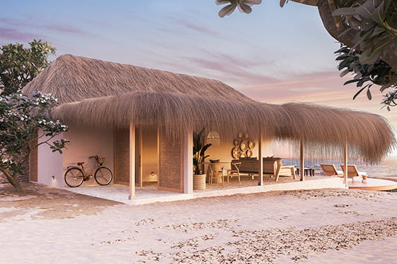 Las Sunrise Villas, con aproximadamente 200 metros cuadrados, se sitúan al este de la isla, ofreciendo vistas a una amplia playa desde donde contemplar el impresionante amanecer. Cada habitación cuenta con cama King size con dosel, una amplia zona de estar con dos sillones y una cama de día, que puede convertirse en una cómoda cama adicional.